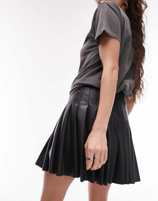 Topshop leather look pleated mini skirt in black ASOS Very well made.