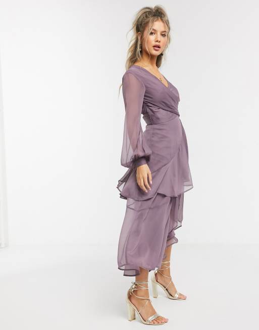 ASOS DESIGN wrap waist midi dress with double layer skirt and long Very well made.