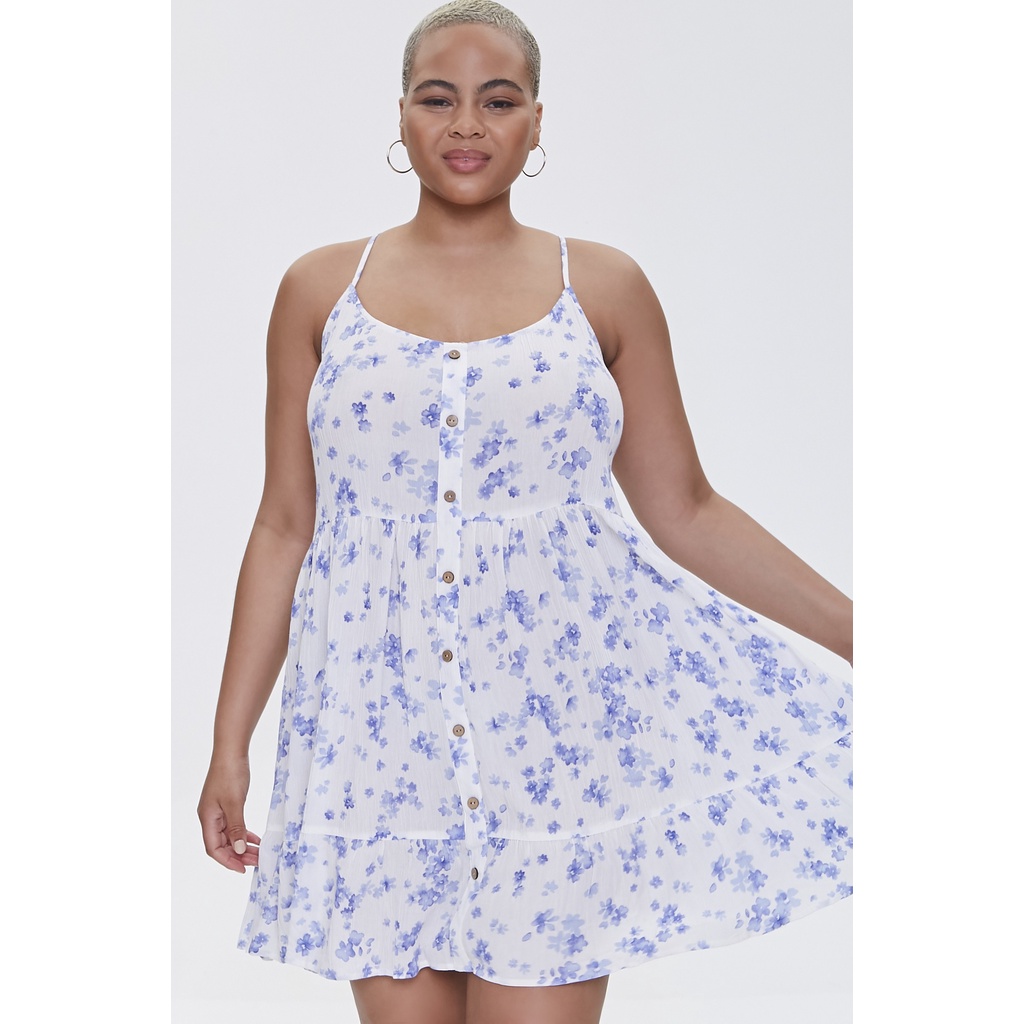 Women s Dresses Forever 21 Plus Size Floral Print Mini Dress Blue Very well made.