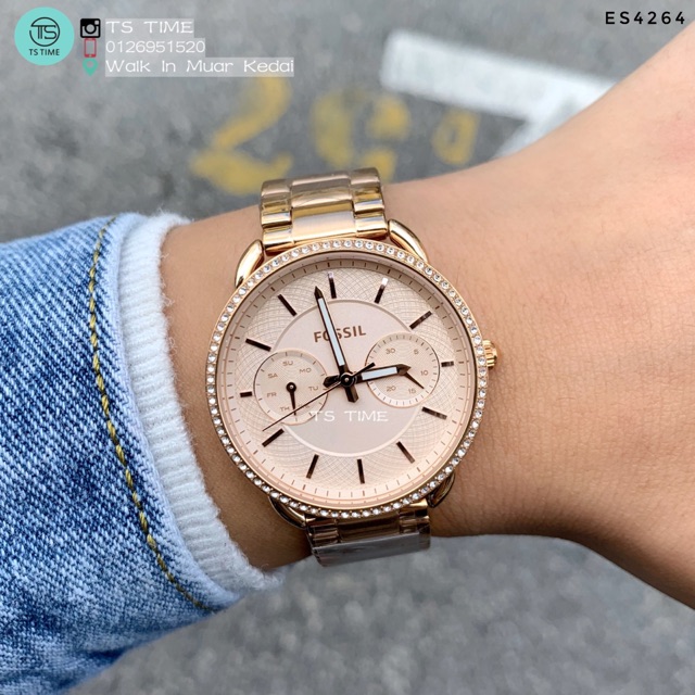 FOSSIL lady s TAILOR MULTIFUNCTION ROSE GOLD TONE STAINLESS STEEL Very well made.