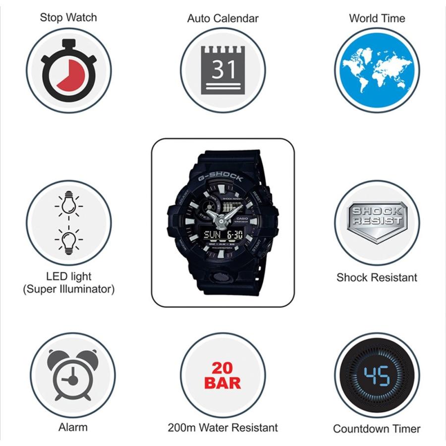 Casio G Shock GA 700 1BDR Men Digital Analog Dial Black Resin Band Very well made.