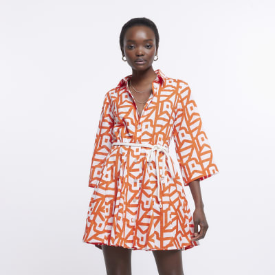 Red geometric tie waist mini shirt dress River Island Very well made.