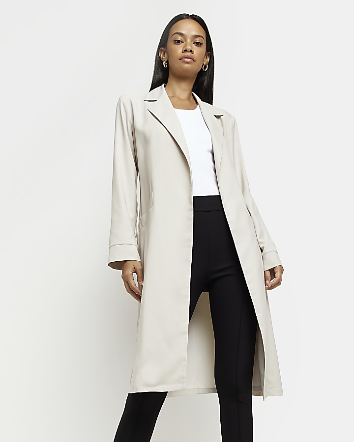 Grey Marl Belted Waterfall Duster Coat Very well made.