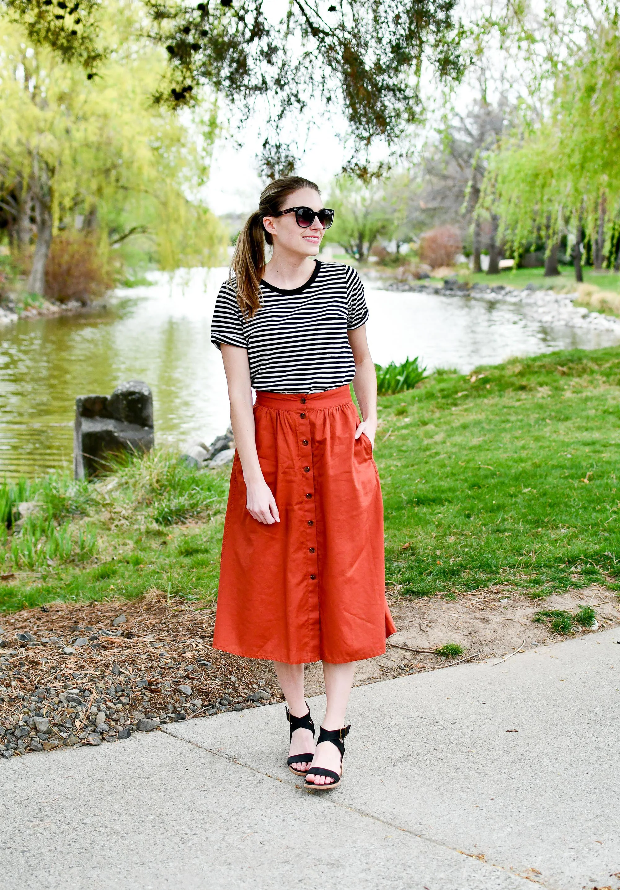 Quilted Crinkle Cotton Midi Skirt Very well made.