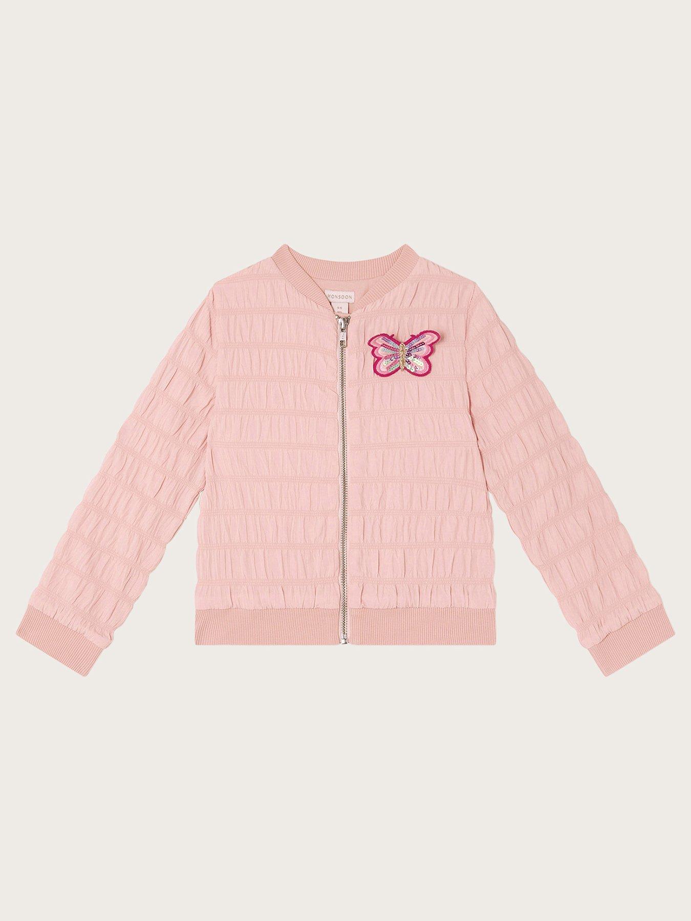 Monsoon Girls Seersucker Badge Bomber Jacket Pale Pink Very Very well made.