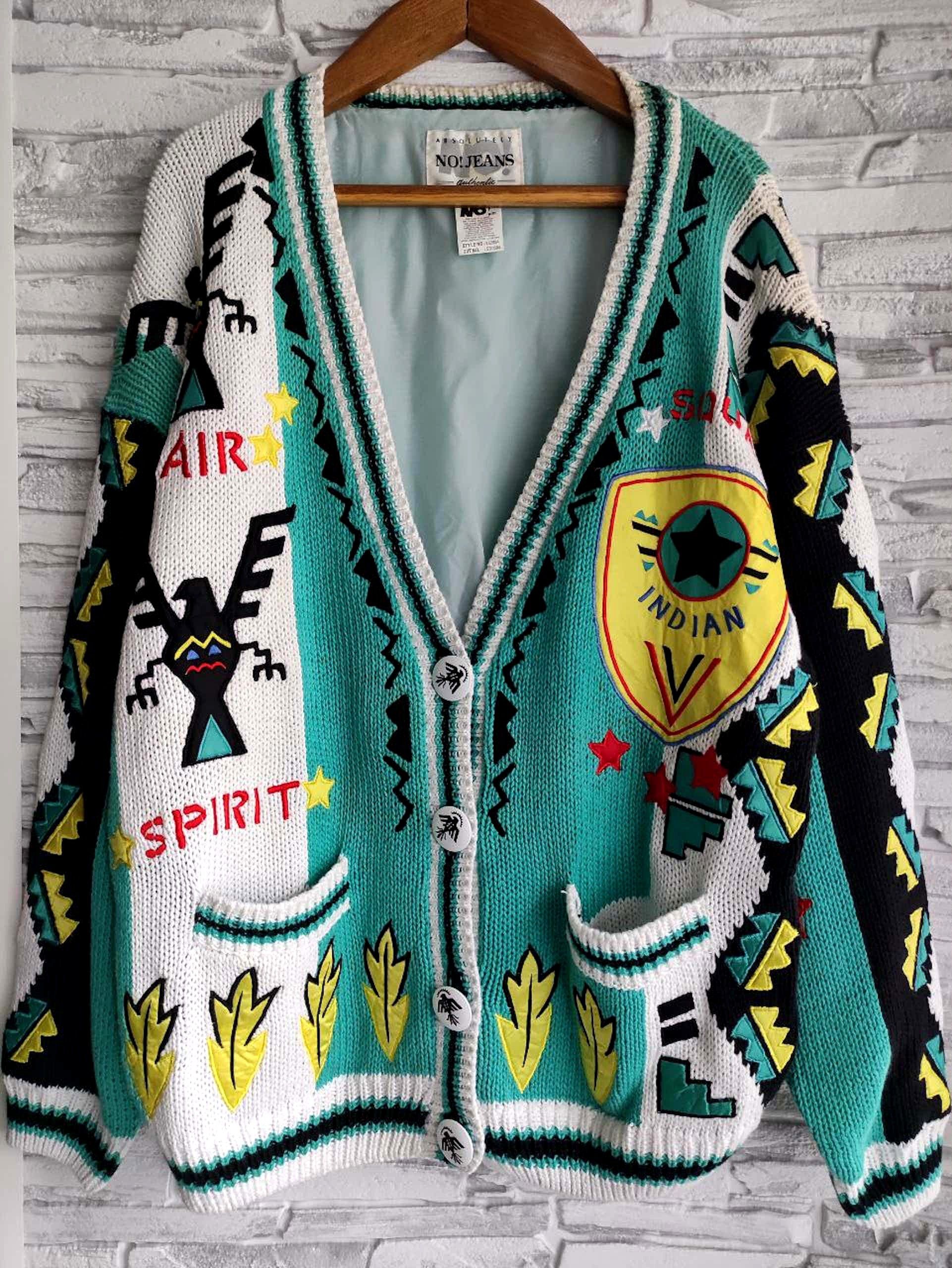 Cardigan Vintage No Jeans Patchwork Multicolor Knitted Sweater Very well made.