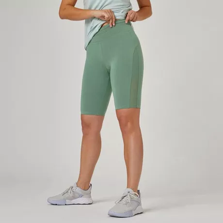 DOMYOS Short Fitness femme coton slim sans poche 520 vert Very well made.