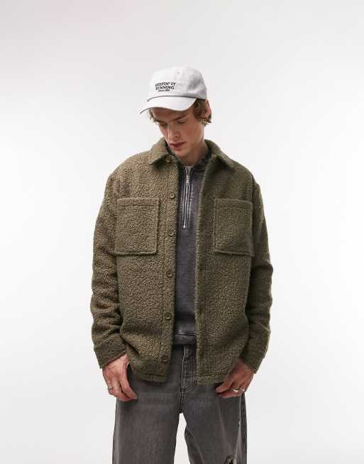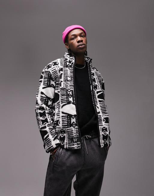 Topman borg jacket with all over pattern print in ecru Very well made.