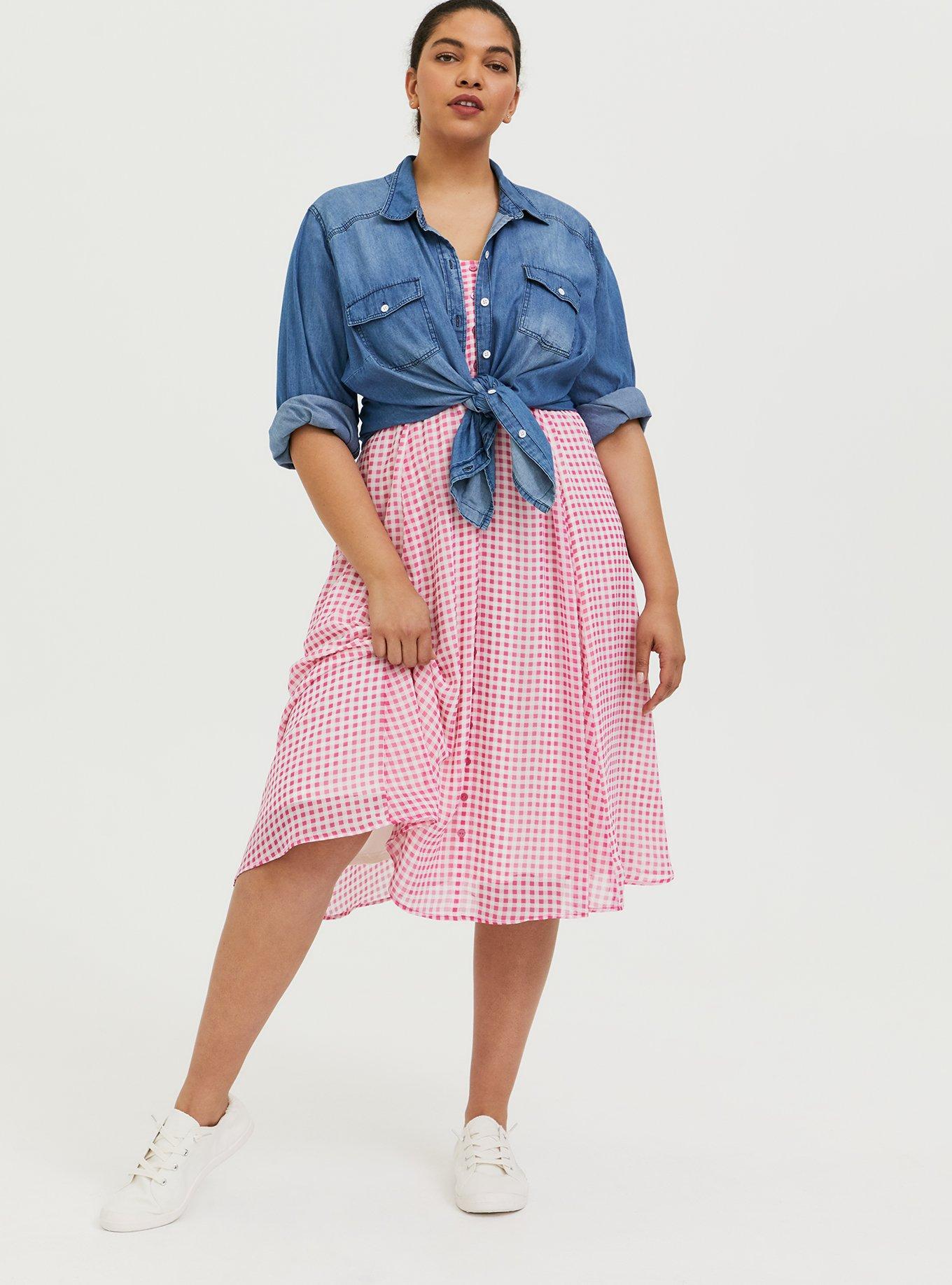 Plus Size Hot Pink Gingham Chiffon Button Midi Dress Torrid Very well made.