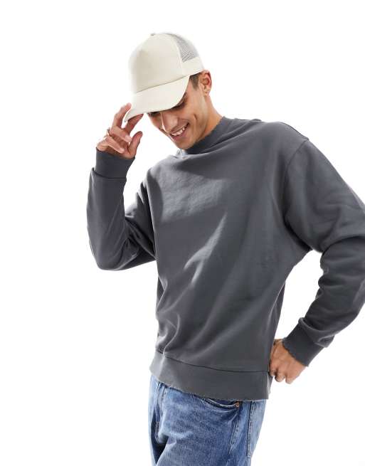 ASOS DESIGN oversized sweatshirt with nibbled hem and cuff in charcoal grey Very well made.