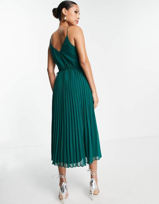 ASOS DESIGN pleated cami midi dress with drawstring waist in forest green Very well made.