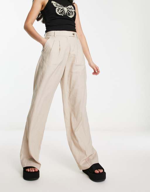 Bershka high waisted wide leg linen pants in sand Very well made.